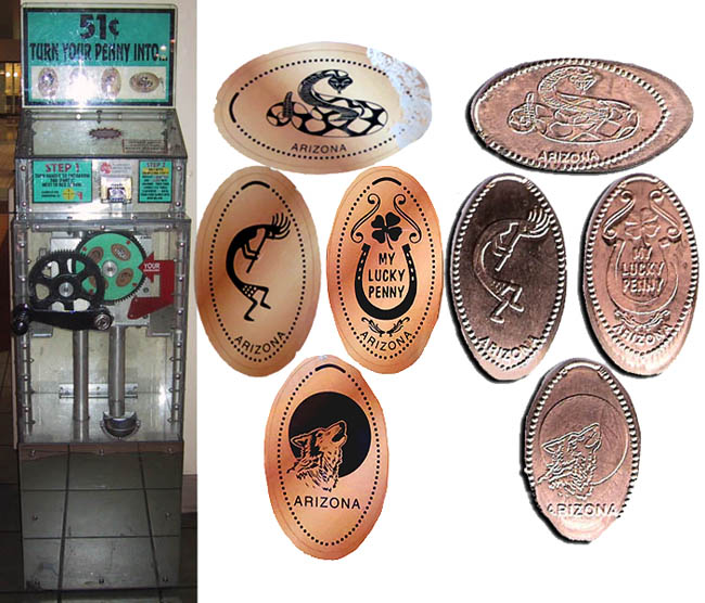 Interesting note: Rustler's Roost restaurant, not far from this location, has the same "My Lucky Penny" design but w/o the "ARIZONA" on it.