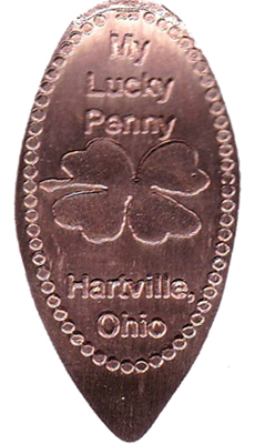 2) 4 leaf clover with "My Lucky Penny Hartville Ohio".