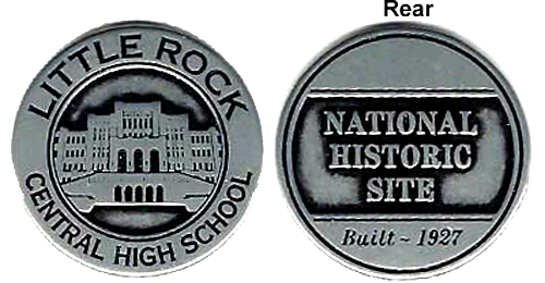 1) 'Little Rock Central High School', image of school/ Rear- 'National Historic Site, Built 1927'