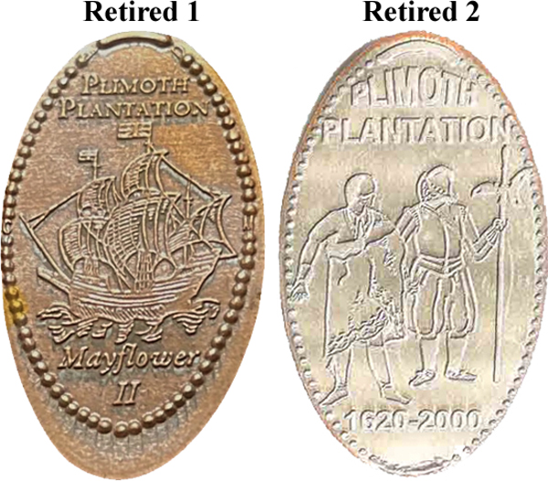 Retired 1: 1) Single design, "Mayflower II" Sailing Ship facing left "Plimoth Plantation; Initials JD and CM