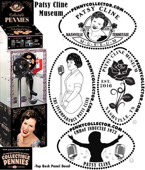 4) 'CMHoF (County Music Hall of Fame) Inductee 1973 Patsy Cline', she facing back between two microphones.