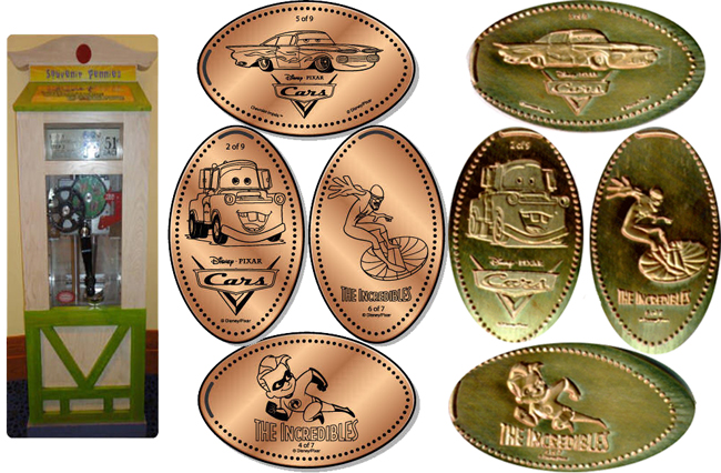 Retired 1: 4 penny 'Cars' & 'Frozen' themed designs machine. 1) Mater the tow truck, from Cars movie, 2 of 9, 2) Ramone, from Cars movie, 5 of 9, 3) Dash, from The Incredibles movie, 4 of 7, 4) Frozone, from The Incredibles movie, 6 of 7