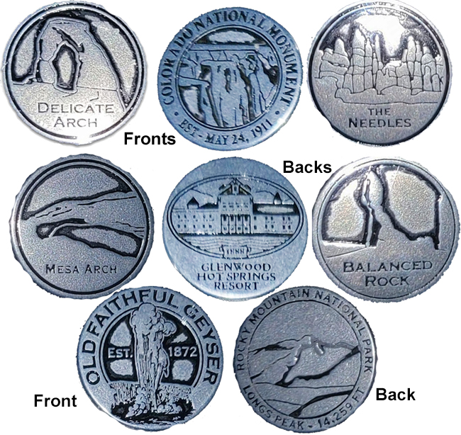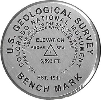 1) 'US Geological Survey, Colorado National Monument, Bench Mark', steel color/ Nothing on back, Black back
