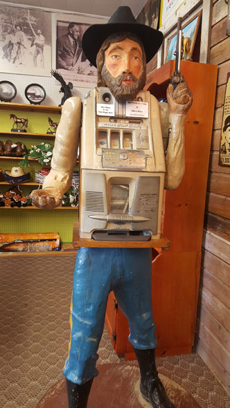 Token machine 1 is near the front of the Gift Shop. This is a slot machine that gives a token on each pull of the handle.
