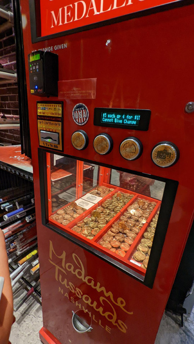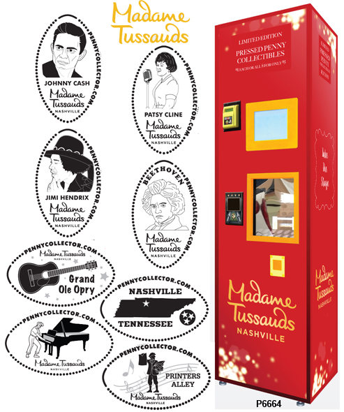 07/13/2025: Machine working, Patsy Cline design has a tendency to misroll, but other designs rolling good most of the time. $1 cash for 1 design or $5 card or cash ($5s and $1s accepted) for all 8 designs. Machine filled with cleaned circulated zinc cents with some copper mixed in
