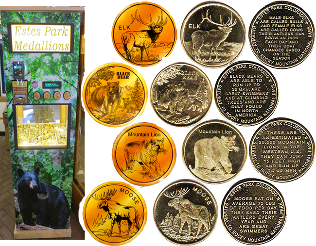 Designs are: 1) Black Bear, 2) Mountain Lion, 3) Moose. 4) Elk.
