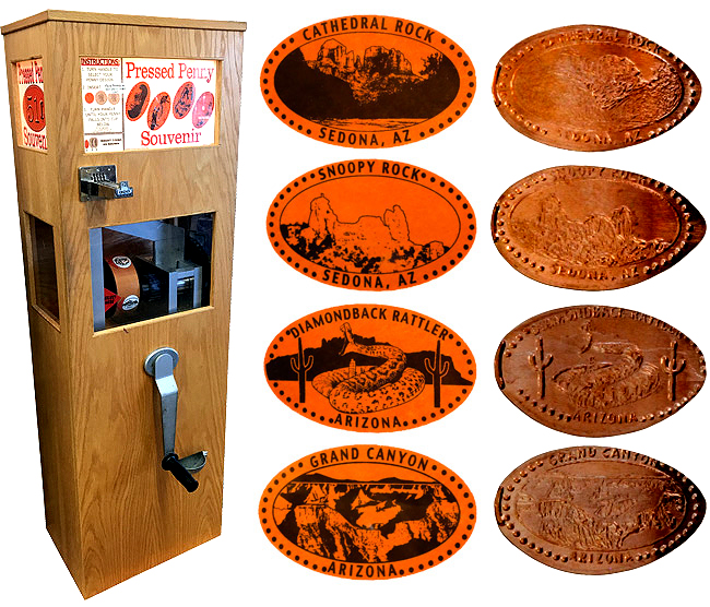 Machine 2 (Placed 6/22/2015) is right in the front of the store on the right hand side. Cost to press: 51¢ each design. Designs all have a beaded border: