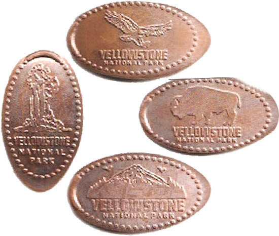 New designs are mountain, eagle, bison, Old Faithful with "Yellowstone National Park" underneath. |