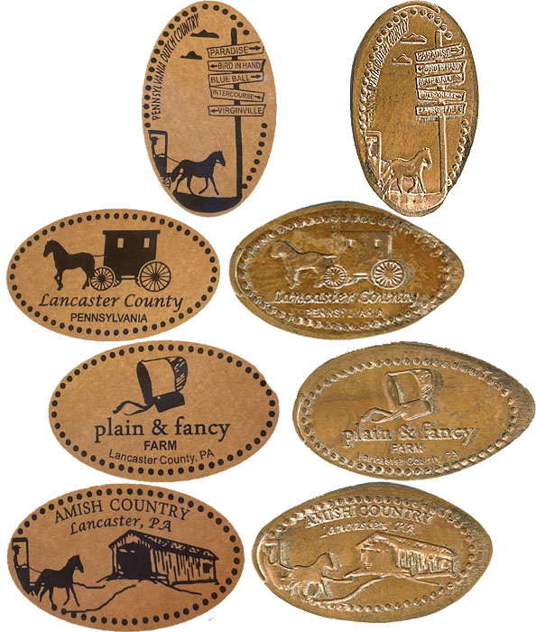 1) 'Plain & Fancy Farm, Lancaster County, PA', Farm logo with woman's hat,