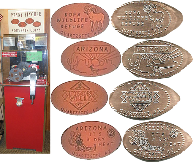 The two penny machines are located inside the Market Centre. One machine was previously located at Quartzsite Chamber of Commerce.