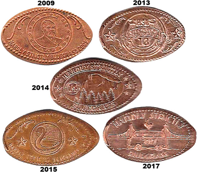 This event has an attended (But you are encouraged to press them yourself) FREE single penny machine on the grounds each year near the small Blusgrass event museum. You only need a penny and but they do have free Zinc pennies available.