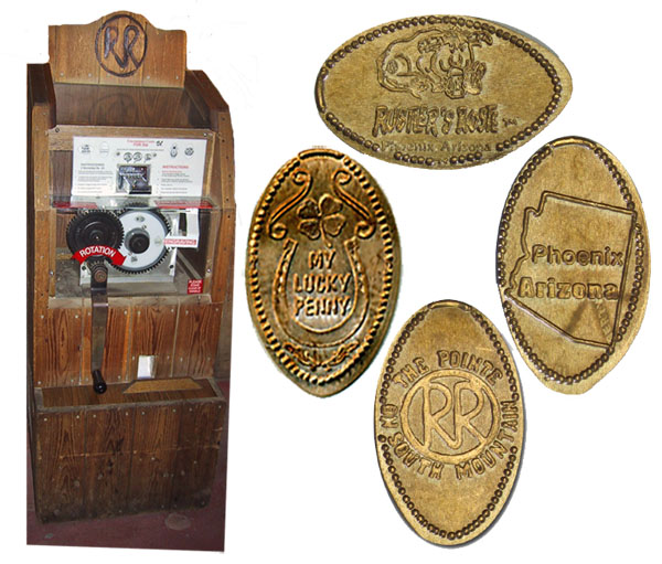 8383 S. 48th St. Phoenix, AZ , 85044 Phone: (602) 431-6474 Website On the other side of the freeway from Arizona Mills Mall. Drive into the resort about a 1/4 mile. The restaurant is up on a hill. The machine, an Uncommon Cents 4-die hand-cranked machine, is in the gift shop, downstairs near the exit and by the restrooms. They are open from 5 - 10 nightly.