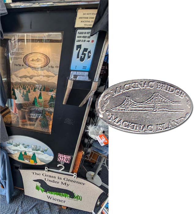 The machine was at the Bargain Barn-n-Caramel corn shop but it went out of business and a restaurant is now there. The machine was moved. to 'A Cats Grin Tourist Trap'.
