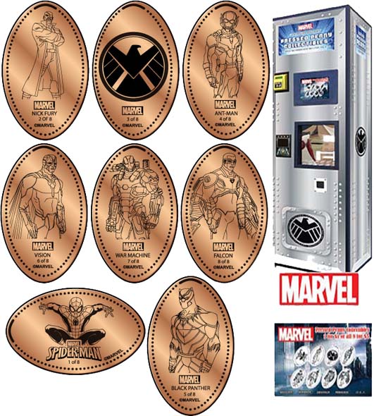 Machine 5: 8 penny machine preloaded machine. $1 for one, $5 for all 8. Avenger designs are: