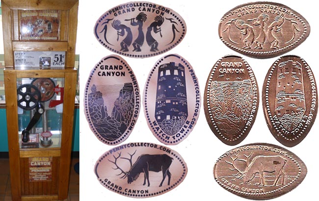Retired Tokens: 1) Yavapai Point, 2) Mather Point, 3) Watchtower, 4) Depiction of the Arizona state quarter.