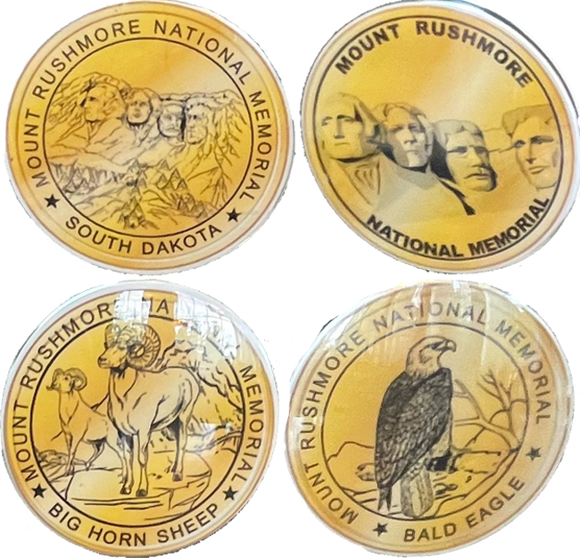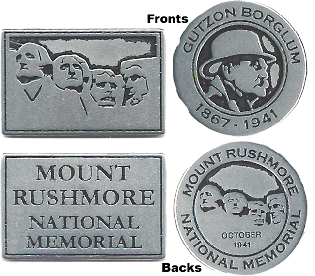 2) 'Mount Rushmore National Monument', image of Presidents / Rear- Info and presidents names. Chrome color.