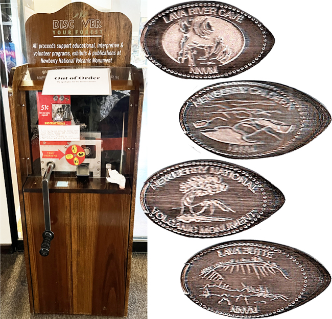 4 designs on a hand crank machine located in the Lava Lands Visitor's Center over by the "theater" area. All designs are horizontal and cost $0.51.