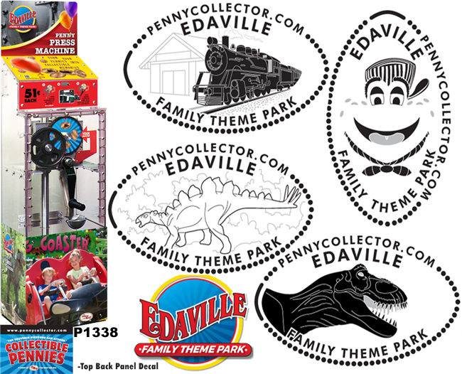 Designs were: 1) Head og a T-Rex, 2) Frog clown with hat, 3) Stegosaurus, 4) Steam engine and train.