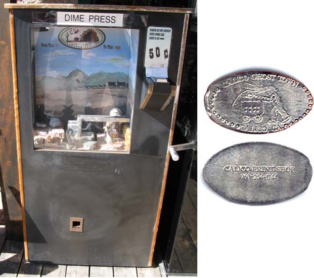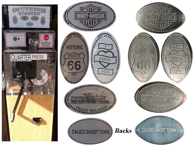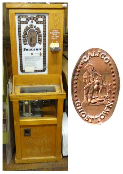 Machine 1 is on the Print Shop front porch. Cost to press: 51¢ each design. Designs all with 'Calico Ghost Town':