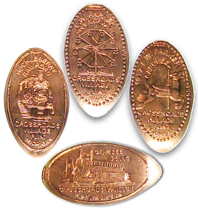 Holiday time Machine 3A. All have 'Crossroads Village Flint, Michigan' on them. Designs are: