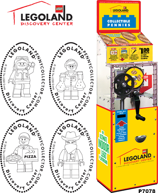 Machine 1: $1 each on Pre-loaded Zinc pennies. It is located directly inside the Legoland Gift Shop