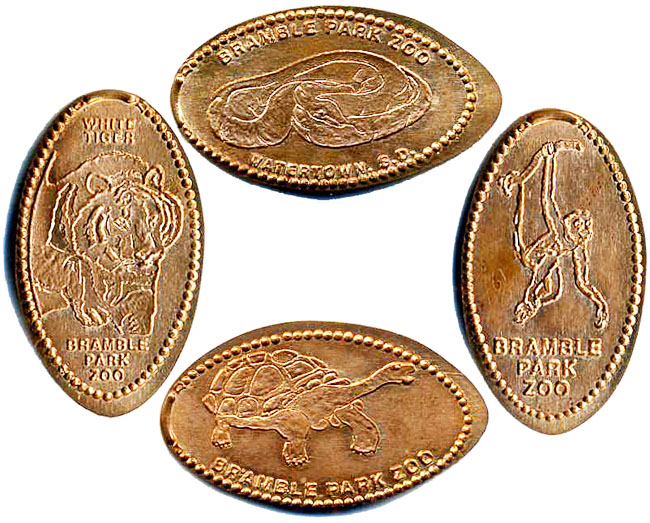 4) A coiled Snake and says, "Bramble Park Zoo, Watertown, SD".