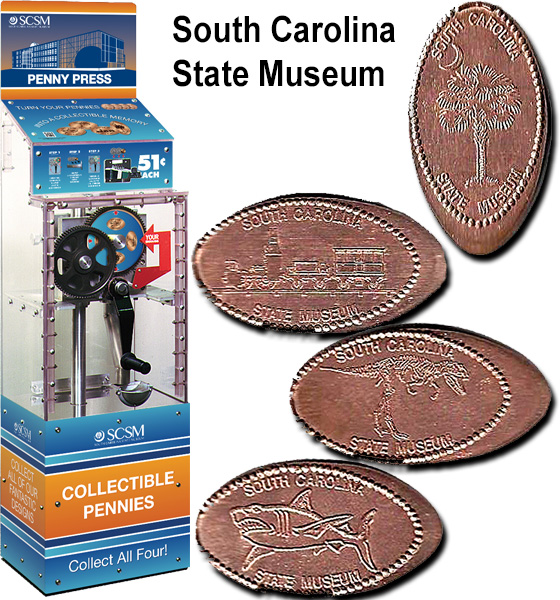 Machine 1 is on the way to the elevators. all say South Carolina State Museum. Designs are: