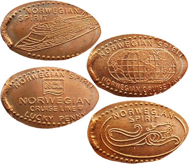 All designs include the words 'Norwegian Spirit' and designs are as follows: