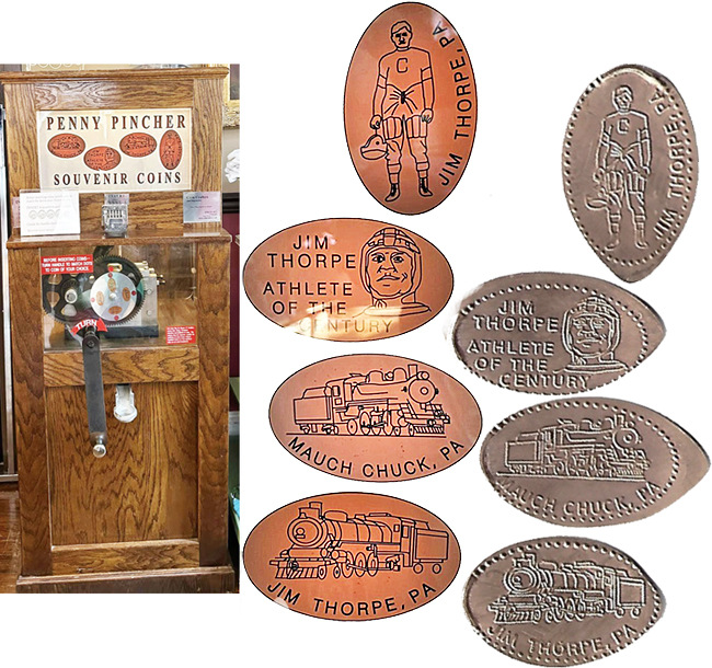 1) "Jim Thorpe, PA" with an image of Jim Thorpe in uniform holding a football,