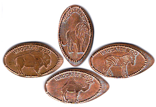 The designs are: 1) Lion, 2) Buffalo/Bison, 3) Camel 4) Zebra