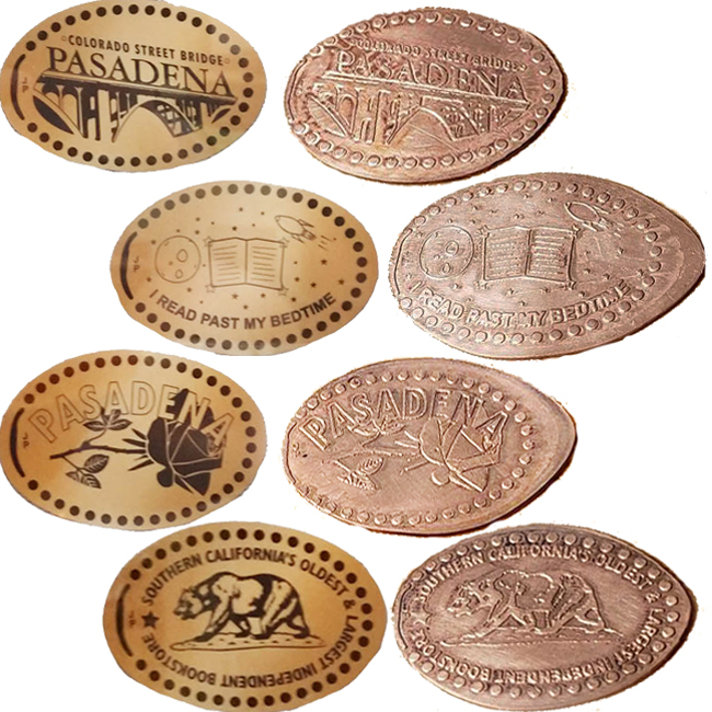The machine is near the checkout at the north end of the store (the entrance to the parking lot, not the street entrance). Cost is 51 cents per design, use your own penny. Designs are;
