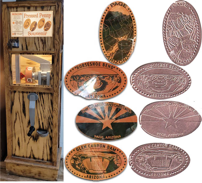 Machine 1 is just to the left of the door as you enter. Cost to press: 51¢ each design. Designs all with 'Arizona':