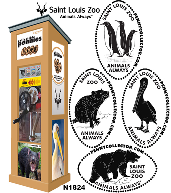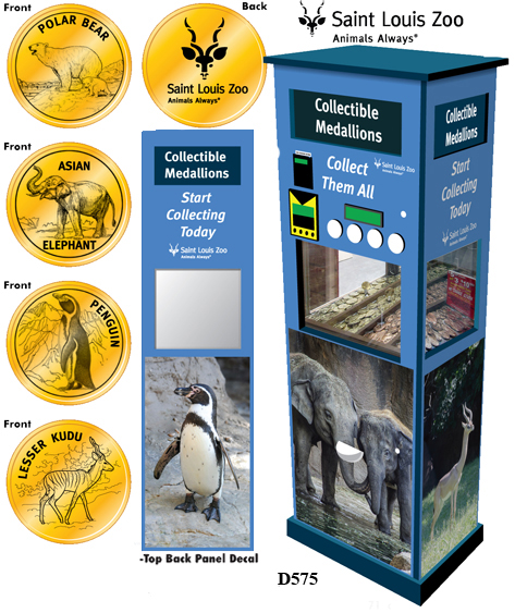 Retired Token Machine 1 (2016): 1) Polar Bear, 2) Asian Elephant, 3) Penguin, 4) Lesser Kudu.