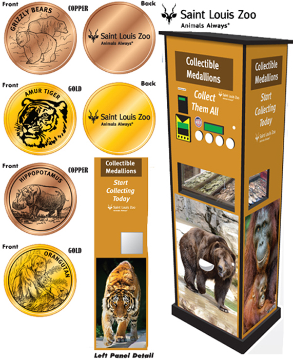 Retired Token Machine 2 (2017): 1) Grizzly Bears, 2) Amur Tiger, 3) Orangutan, 4) Hippopotamus.
