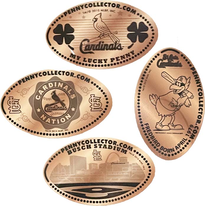 2) Cardinal on a bat with four leaf clovers MY LUCKY PENNY,