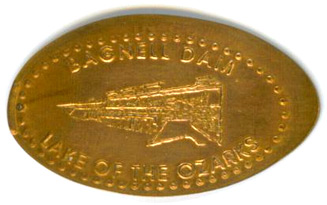 1) 'Bagnell Dam, Lake of the Ozarks' written around the imprint of the dam.