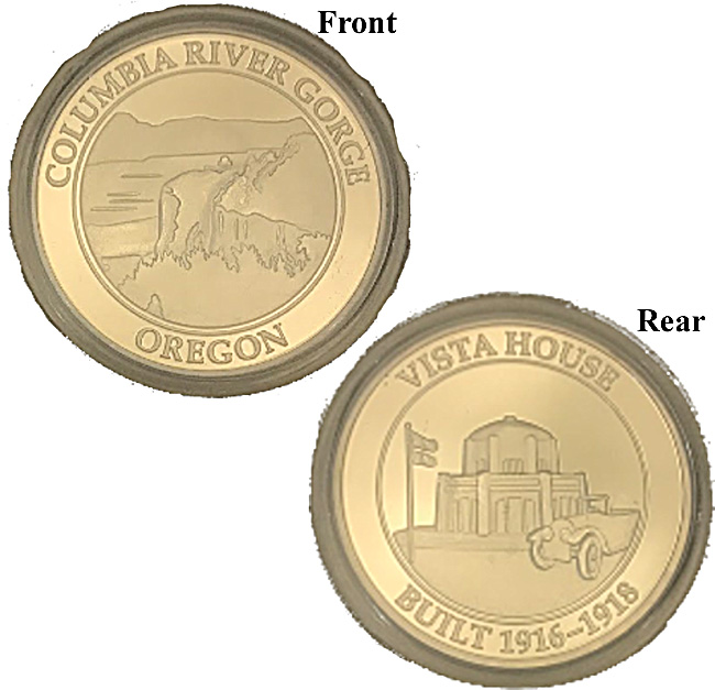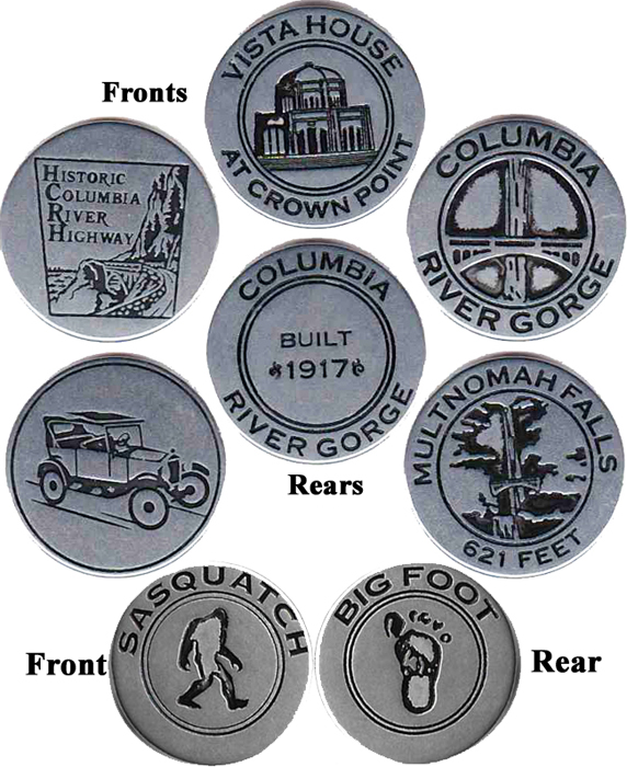 2) Front: Old Highway 30 along the Columbia River with 'Historic Columbia River Highway'/ Rear- 'Columbia River Gorge Built 1917'