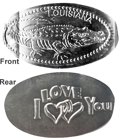 1) 'Louisiana', Alligator/ Rear- 'I Love You', with hearts.