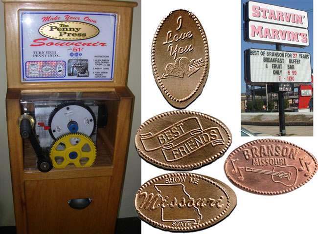 1) "BRANSON, MISSOURI" with guitar, piano keyboard and musical notes.