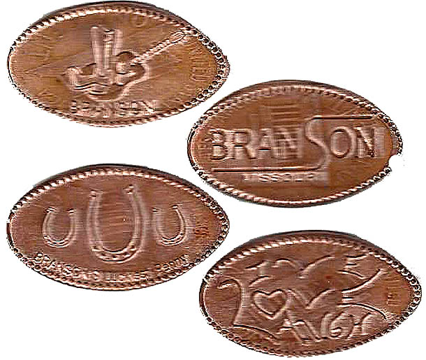 3) 3 horseshoes, 1 large and 2 small above "BRANSON'S Luckiest Penny",