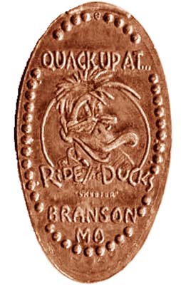 2) Head of Duck, "Quacked up at...Ride the Ducks." "Branson, MO." (Branson B' & 'N' fully inside dots) (V)