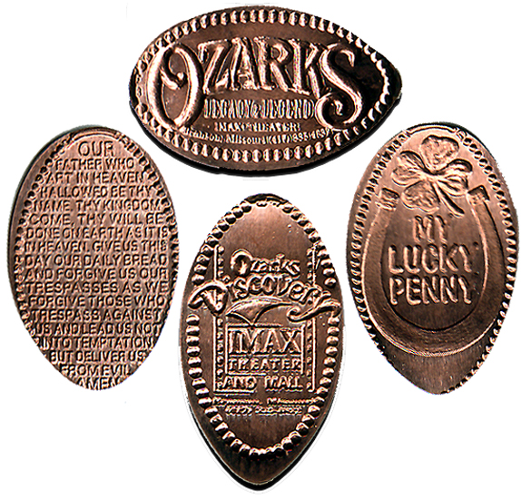 Retired 3: 1) "Ozarks Legacy & Legend", 2) Ozarks Discovery logo, 3) Lord's Prayer, 4) "My Lucky Penny" with Large horseshoe,