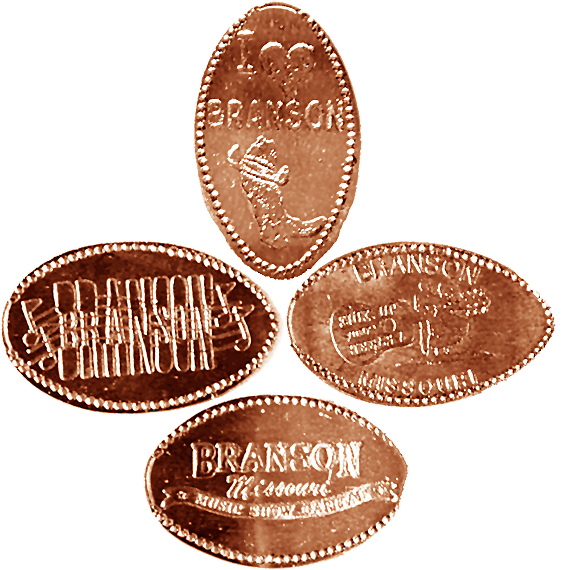 3) "BRANSON"/ Missouri (in script)/MUSIC SHOW CAPITAL on scroll with a star at each end.(H)