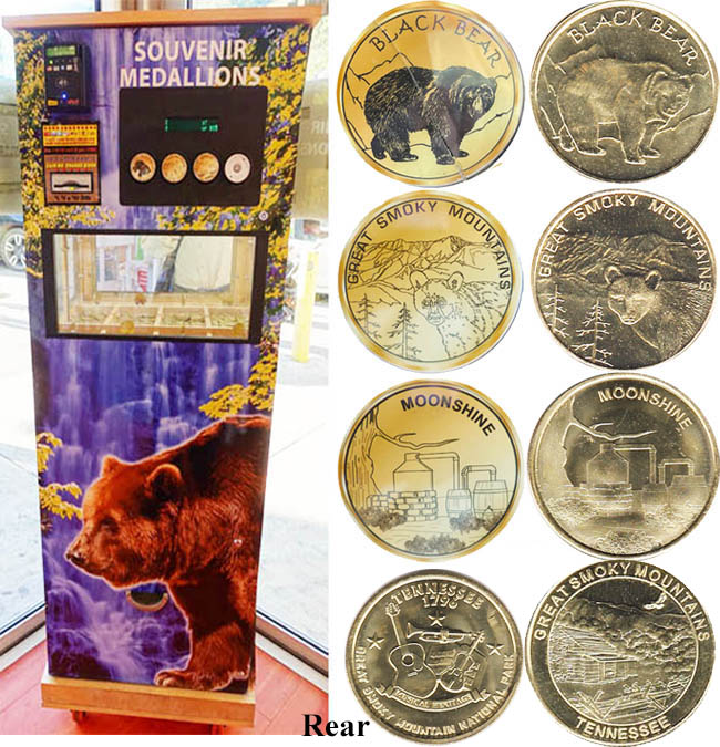 4/3/25 The penny machine and token machine are both still in the same location and working fine.