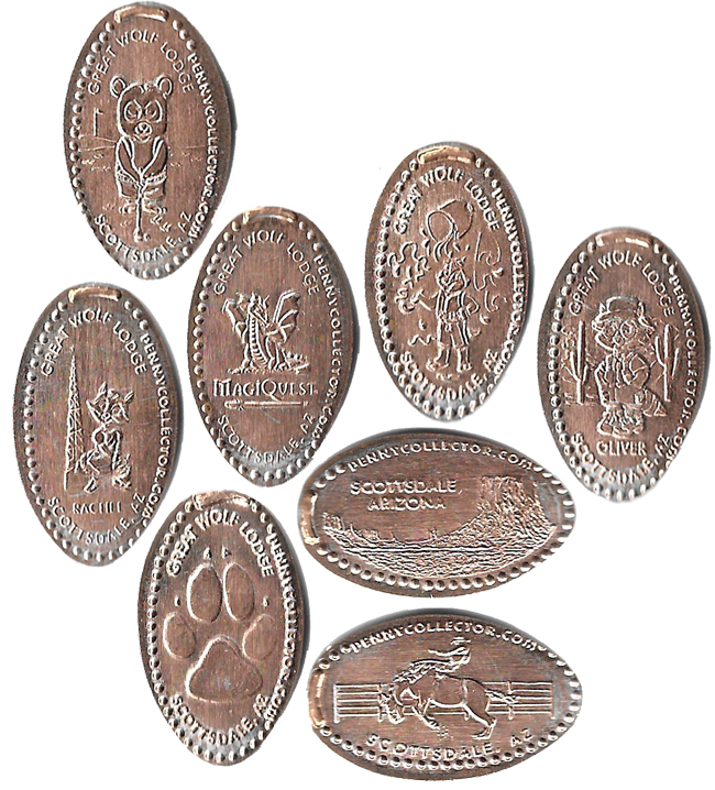 Reverses all have 'Scottsdale, Arizona' with the Great Wolf Lodge logo.