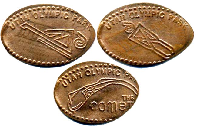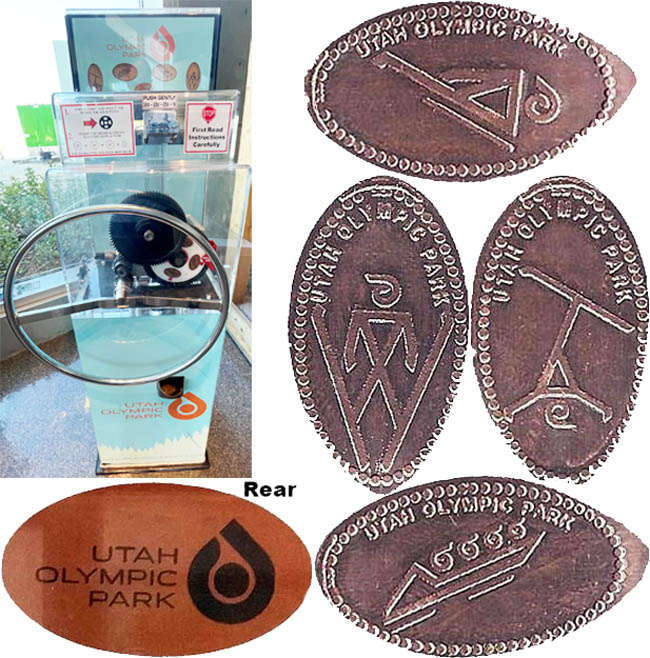 Machine 3 .76 cents each. All have (Utah Olympic Park' on the front and 'The Utah Olympic Park' logo on the back. Designs are:
