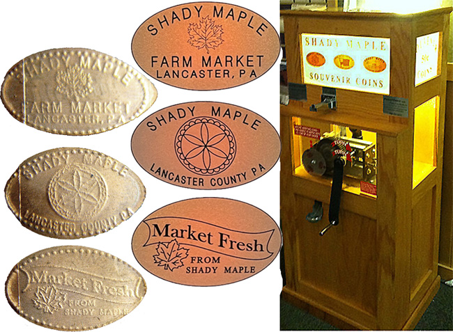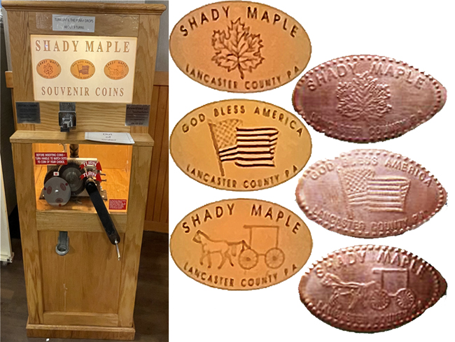 Retired 1: 1) 'God Bless America Lancaster County PA', USA Flag, 2) 'Shady Maple Lancaster County PA', Horse and Buggy, 3) 'Shady Maple Lancaster County PA', Maple Leaf.