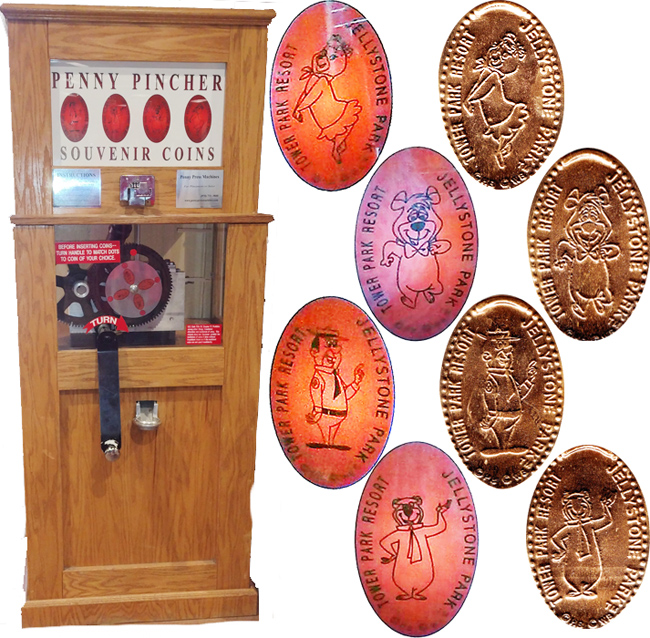 The machine is in the Ranger Station (General Store) to the right as you walk through entrance. Designs are: