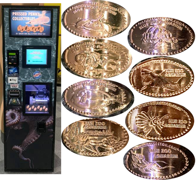 All have 'Blue Zoo Aquarium' on them. $1 each or all 8 for $5. Pre loaded Zinc pennies. Designs are:
