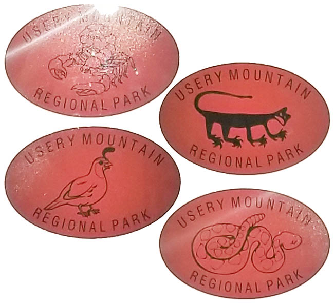 Machine 1: All have 'Usery Mountain Regional Park' on them. Designs are: